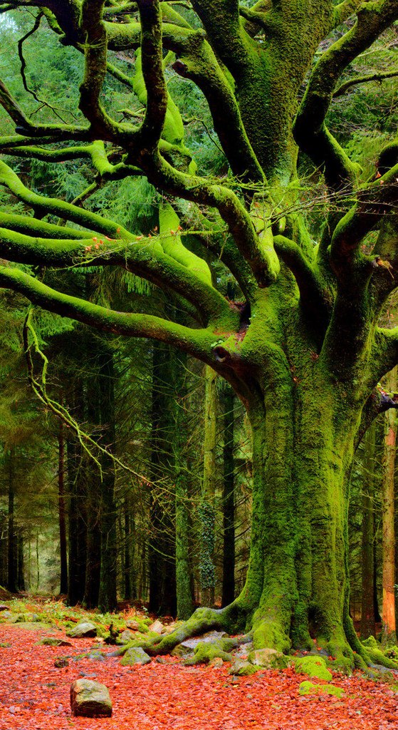 Дерево, полностью покрытое мхом, Япония