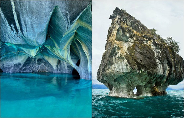 Пещеры из чистого мрамора, расположенные на границе двух стран Аргентины и Чили.