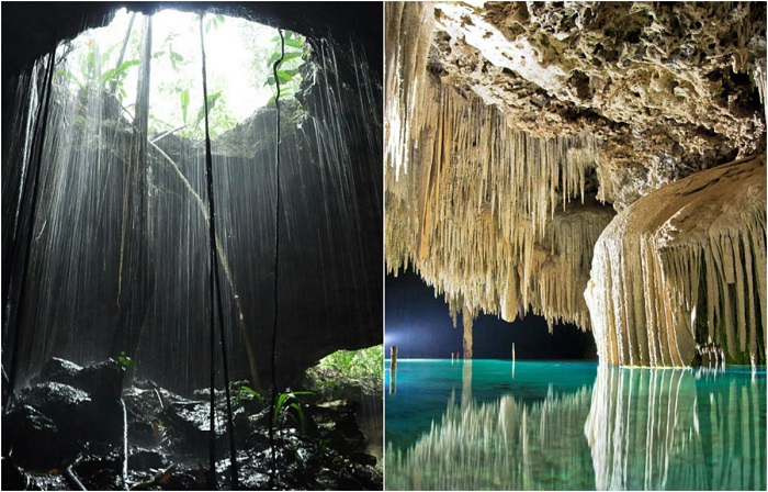 Чистейшая вода, туннели, пещеры, заполненные сталактитами и сталагмитами.