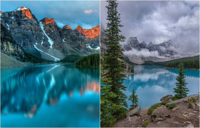 В синих водах озера Морейн отражается десять огромных канадских вершин.
