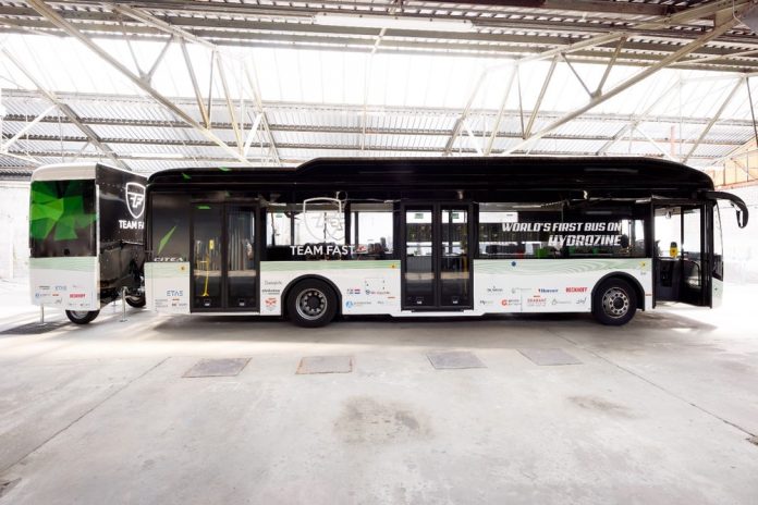 Технология, которую предлагают студенты, называется hydrozine, такое топливо на 99 процентов состоит из муравьиной кислоты и на 1 процент из водорода и СО2, и на данный момент она адаптирована для автобусов.